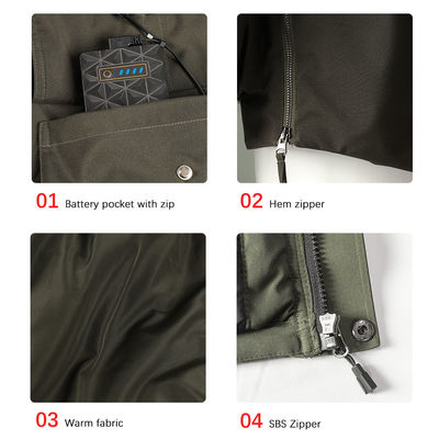पूर्ण आस्तीन पुरुष रिचार्जेबल गर्म जैकेट इलेक्ट्रिक वार्मिंग जैकेट